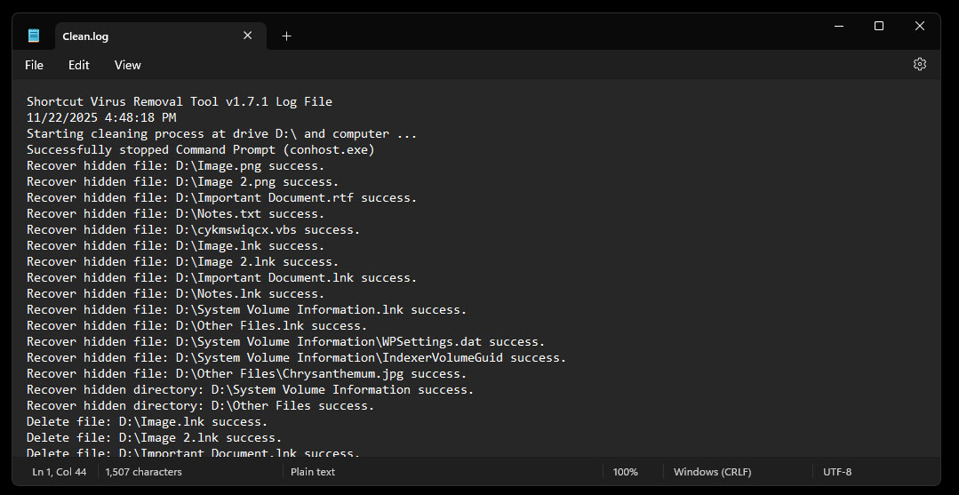 نبذة عن برنامج شورت كت فايروس ريموفر Shortcut Virus Remover :